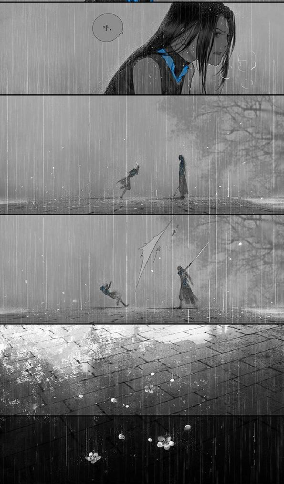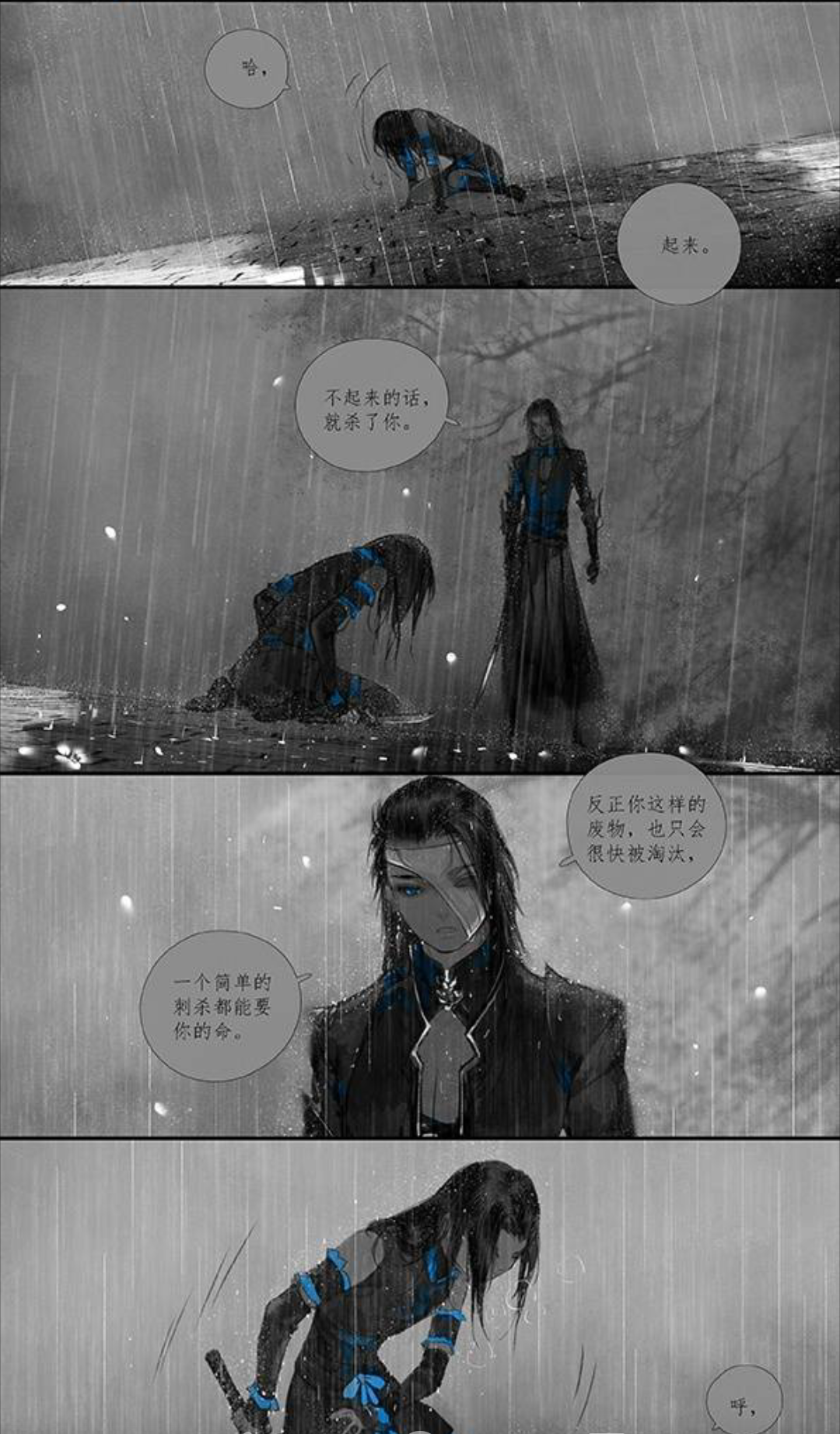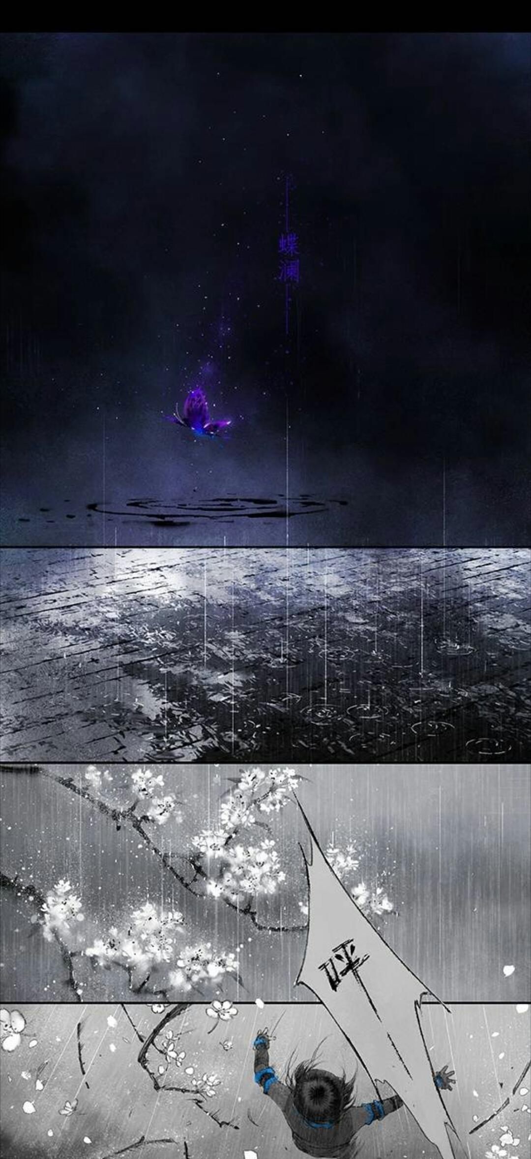 作者作画很有特点和风格,画风也很好,水墨画的质感,加上恰到好处的蓝紫点缀,让人眼前一亮