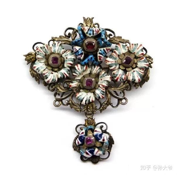 很多时候巴洛克风格的珠宝总是透出一股浓浓的农家乐审美,跟珐琅的大量使用不无关系。这时,无论珠宝的正面和背面,总能见到娇艳欲滴的珐琅。