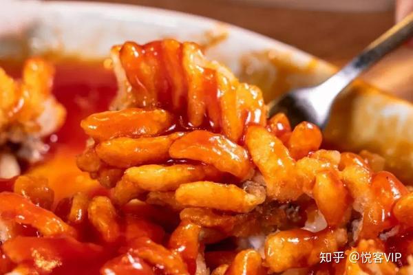 最后我们来说说“糖粘”,糖粘有蜜汁、挂霜、琉璃和拔丝四种,主要用来制作甜味菜肴。先把糖放到油里融化成金黄色的糖浆,这些糖浆可以和红薯等食材混合制作成菜肴。