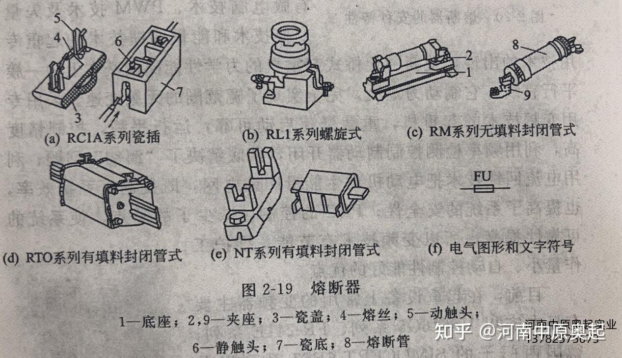 熔断器是由特殊导电材料制成的一种器件,当通过它的电流大于一定值时,能依靠自身产生的热量使溶体熔化而自动分断电路,因此可用于短路保护。熔断器的外形如图2-19所示。