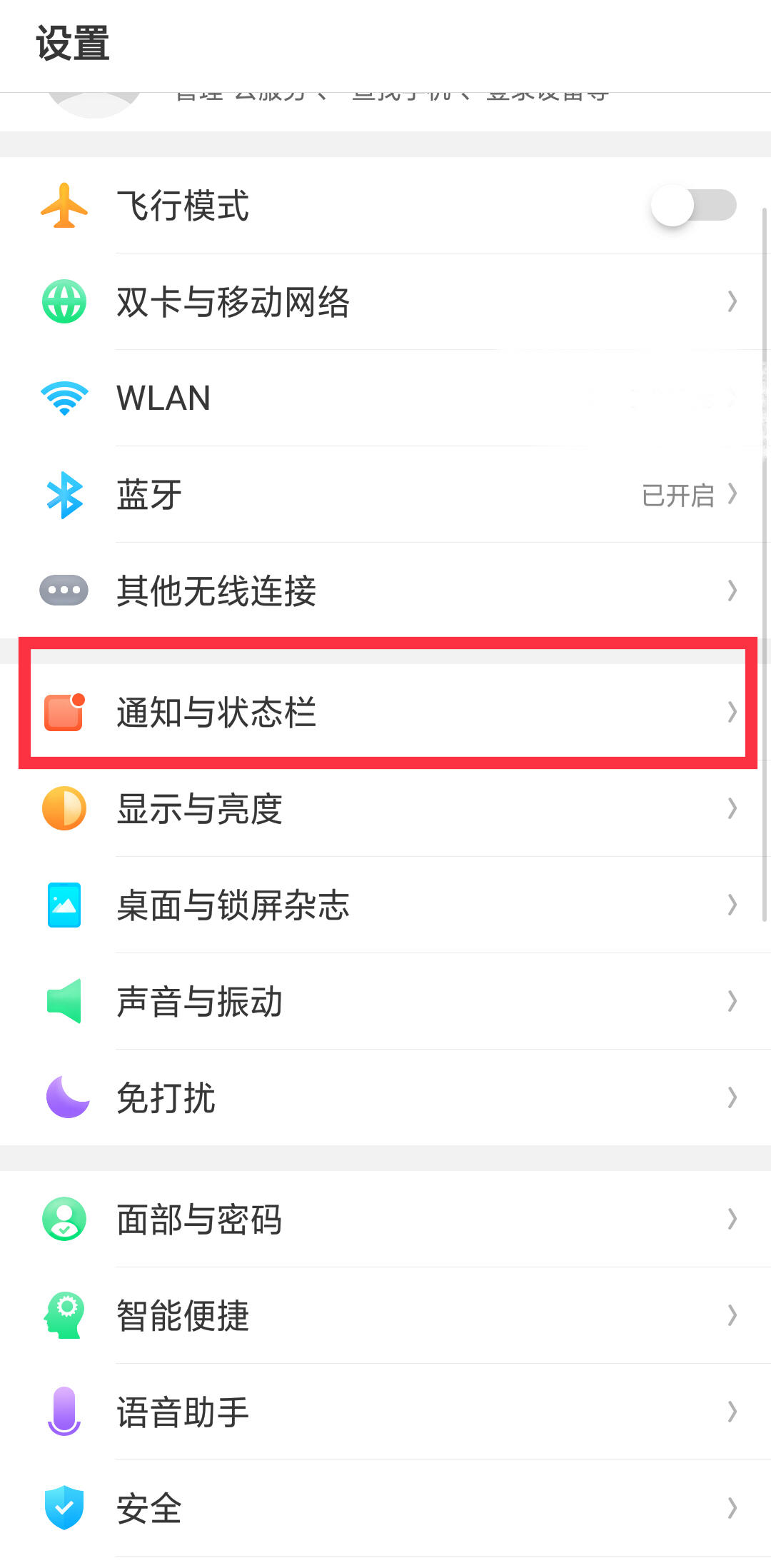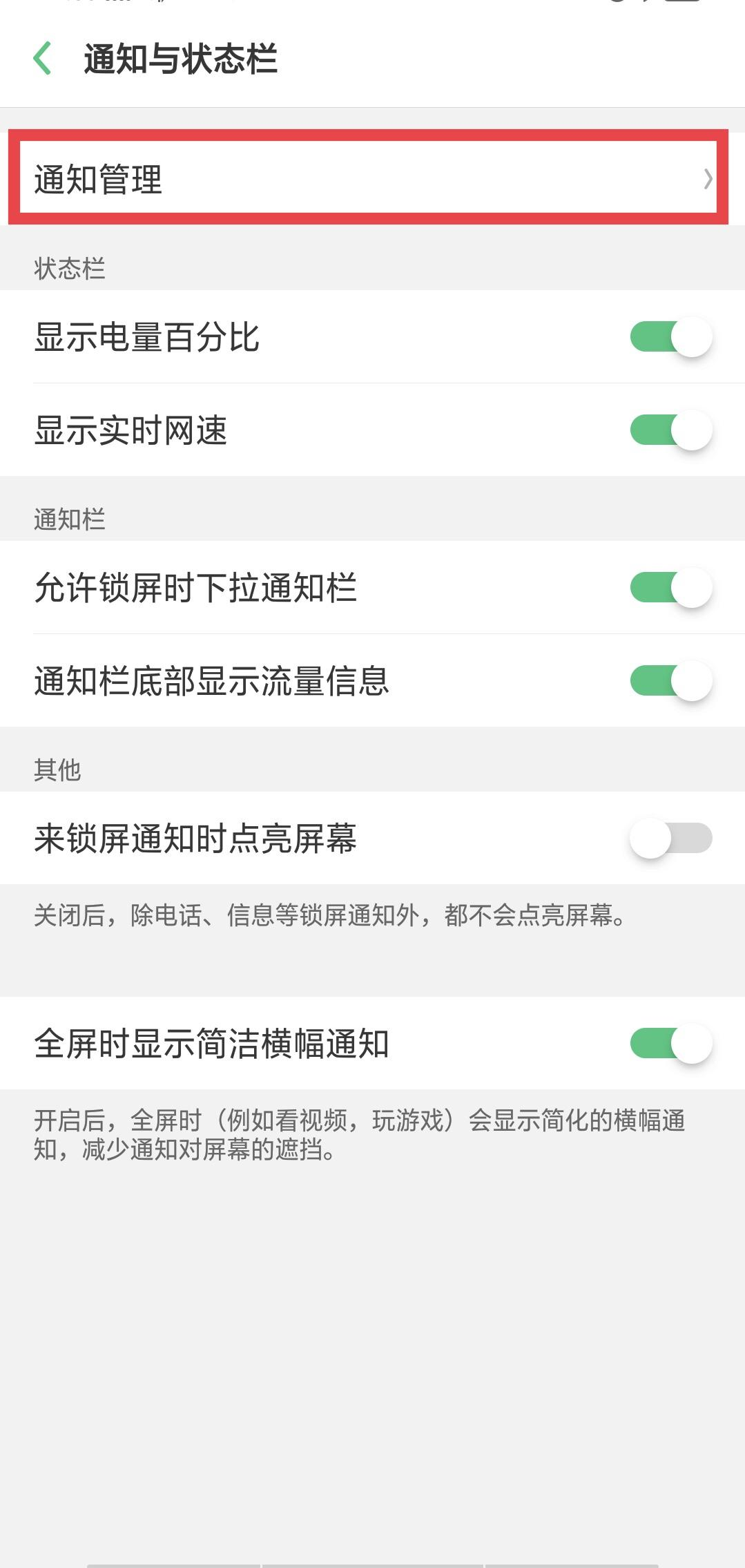 2.在“通知与状态栏”里,点击顶部“通知管理”,如图2;