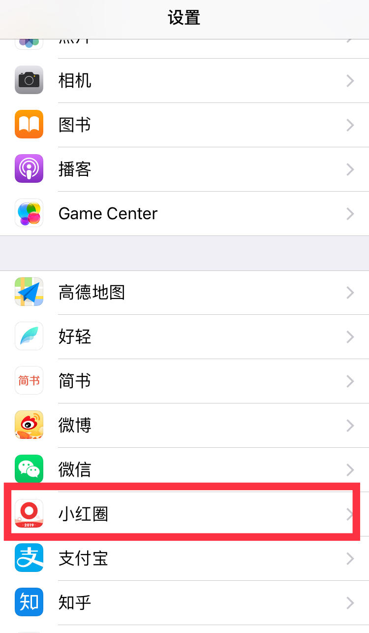 1.打开手机系统里的“设置”,下拉找到小红圈app,如图1;