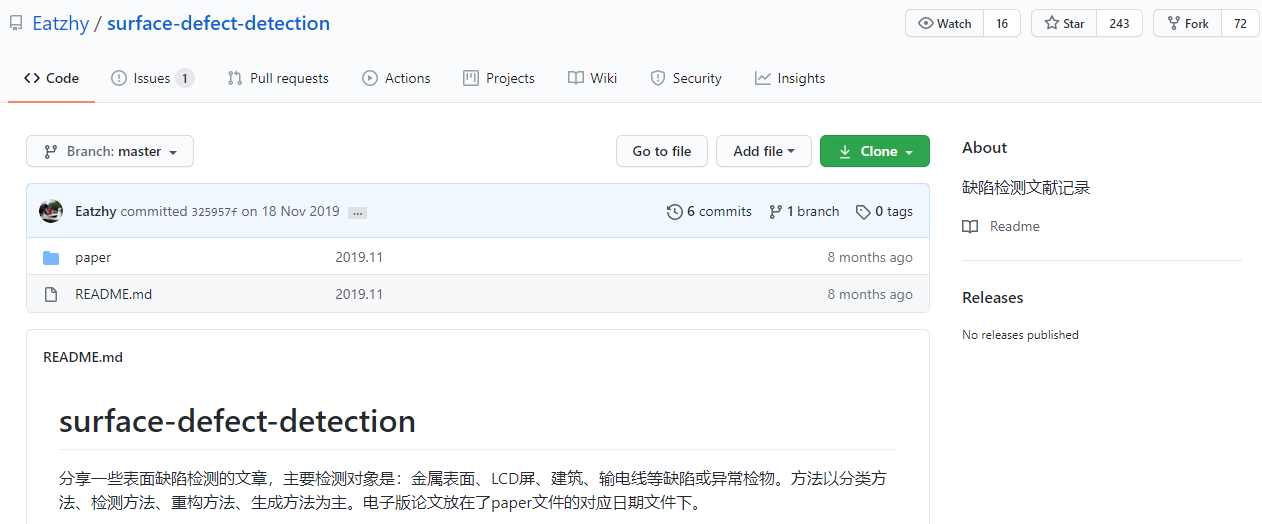 更多关于表面缺陷检测的文章的 文章 : https:// github.com/Eatzhy/surfa ce-defect-detection