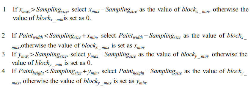 - 采样块的多角度和多变换 :确定采样块的适当大小后,校准采样块的位置。 在各自的范围内随机选择采样块的左上角坐标(blockx,blocky)10次 ,可以更好地保证训练图像中缺陷位置的多样性。 查找(block x,block y)范围的规则如下: