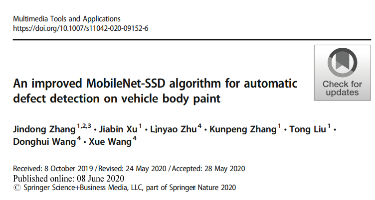 题目: 一种改进的MobileNet- SSD算法用于车身漆面缺陷自动检测