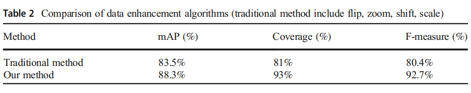 通过实验可以看出,利用本文的数据增强算法后的效果相比传统数据增强mAP都有明显的提升。