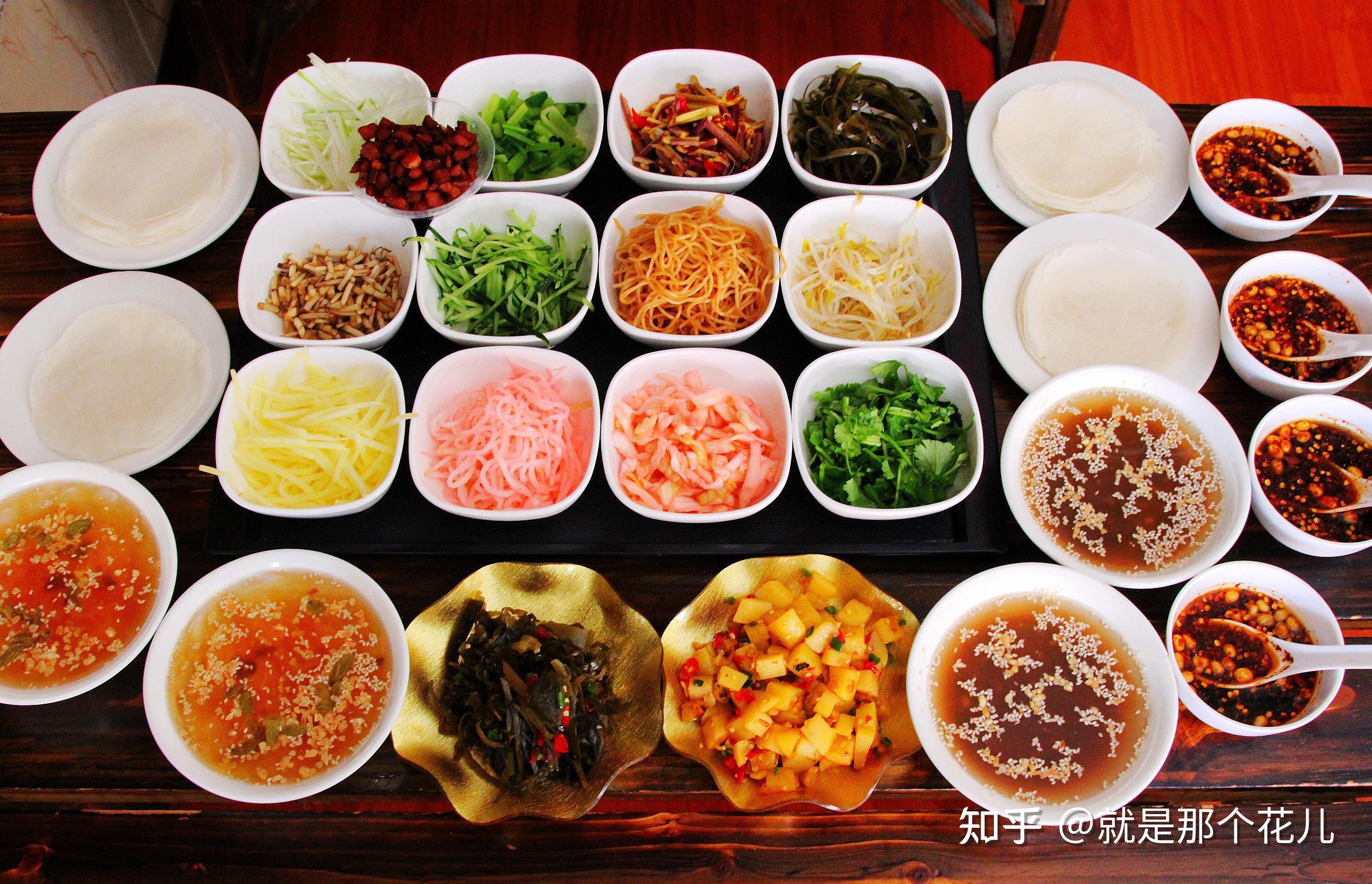 丝娃娃作为贵阳传统小吃,无论冬天还是夏天,贵州人都爱这口 。吃丝娃娃的场面也很壮观, 端上来就是十几碗菜。每一碗里面就一种菜,分量不大,而且都是素菜,另外还有一盘饼皮。用一张薄薄的饼皮,包着各种菜,再淋上特色的酸汤,然后送进嘴里,素菜脆嫩,酸辣爽口,开胃健脾。满满咀嚼,慢慢体验各种味道在舌尖汇合产生的奇妙反应。