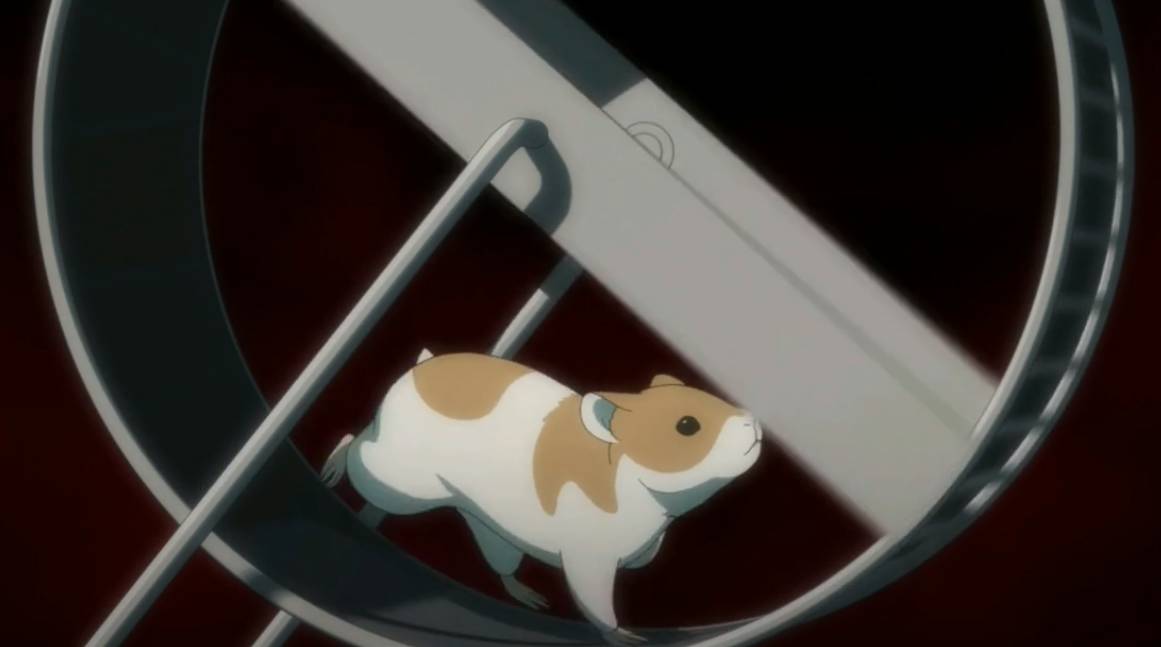 在一系列的事件中,凶手终于注意到了男主的存在,这个变态说男主好像自己曾经没有搞死的一只仓鼠,这让他很兴奋所以必须要搞死他(这个理由很强势)。