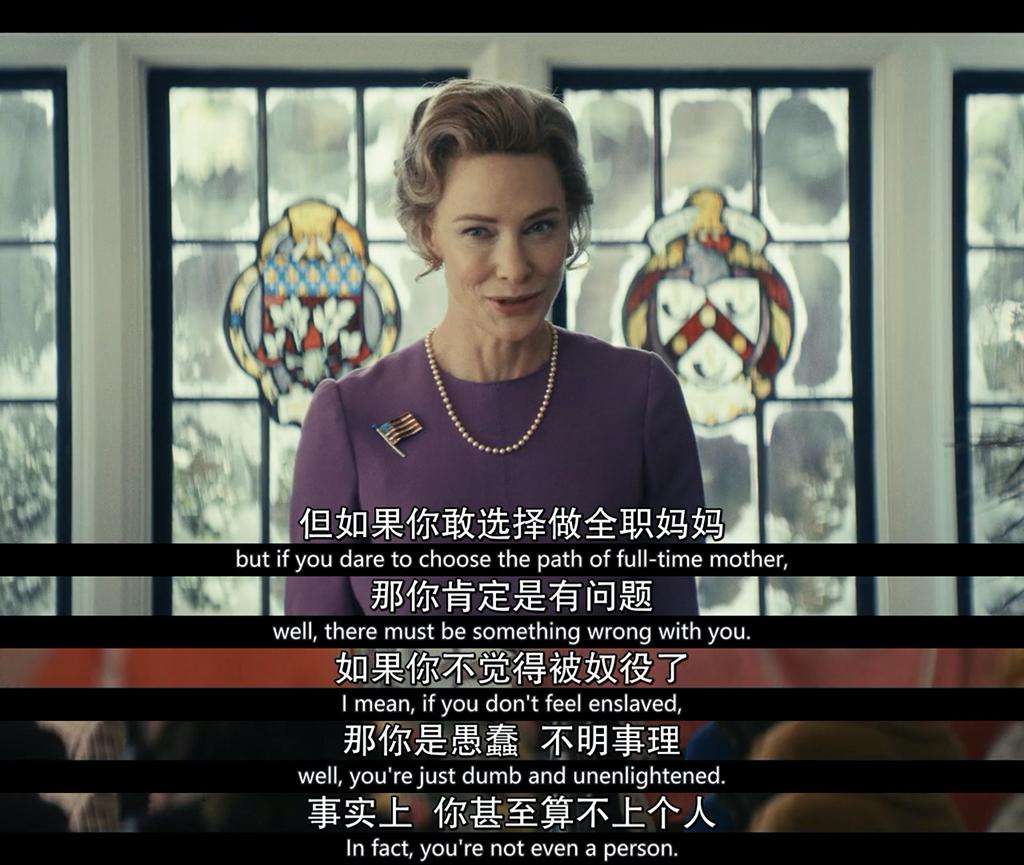对于一个“反女权大魔王”的矛盾处境和复杂心理的描绘,正是《美国夫人》精彩的部分。