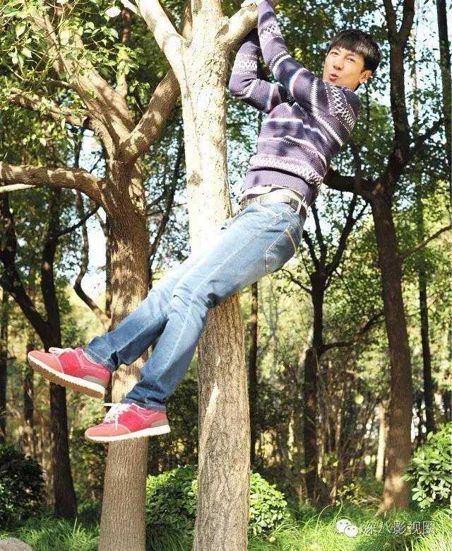 2015年拍摄《老婆大人是80后》的花絮,粉丝称为:猴子上树照。此时张鲁一35岁了,还是那么活蹦乱跳的,宛如少年。