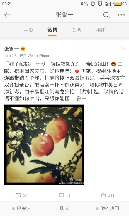 他给朋友祝寿的时候画了一幅寿桃,自称“猴子献桃”