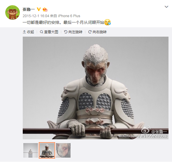 张鲁一的微博在宣传《他来了请闭眼》期间发了这张猴子照片。