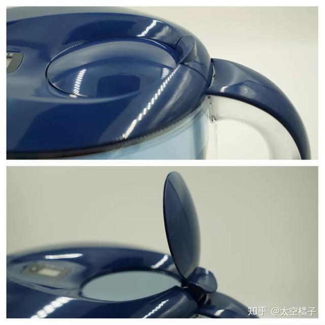 指压式的注水设计,不过发现九阳款的模板有问题,每次把它打开之后,就很难用普通的力再关上,需要用手稍微掰一下才能复位,碧然德的没有这样的问题。