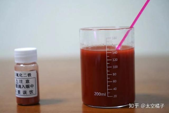 将适量铁粉倒入自来水中,并用搅拌棒进行搅匀融合。