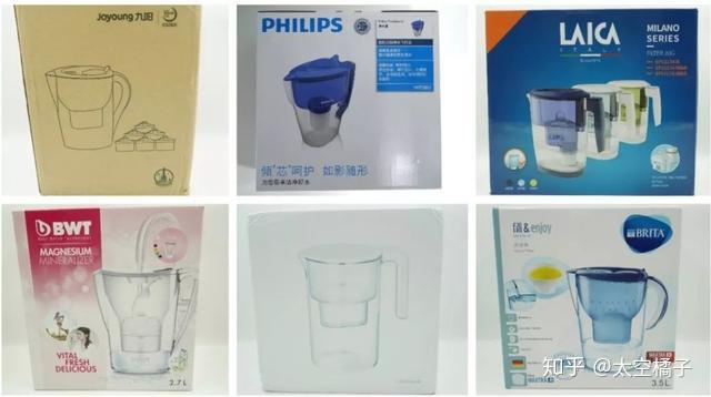 外包装方面九阳比较朴素,符合它一向走群众路线的方针。小米还是玩简约,人群中一眼就能认出来。其他都是塑料纸盒包装,包装结实完好。莱卡和BWT都有多色可选,并在箱子上表明了内装颜色,细节做的很好。飞利浦的滤水壶,包装是传统的飞利浦风格,右上角有产品的一些特点。最后是碧然德的滤水壶,自带一个滤芯,包装也不错,在左下角都有产品特性介绍。