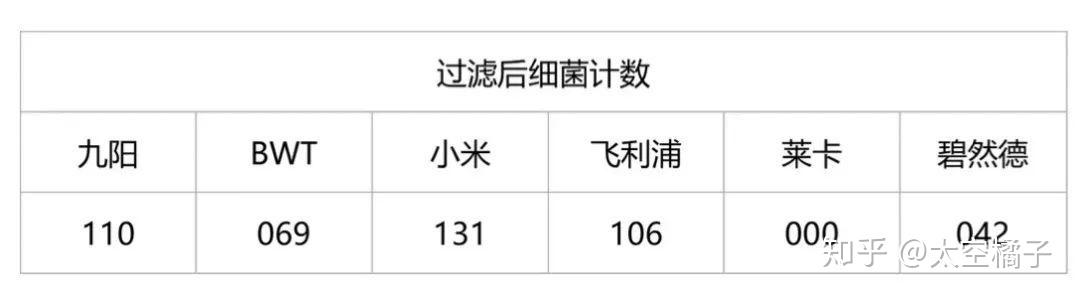 测试结果还是比较让我意外的,碧然德和BWT表现还算不错,飞利浦,九阳和小米均不能完全将大肠杆菌完全过滤掉,特别是小米,残留的最多。数据再次证明九阳虽然外形和碧然德一样,但滤芯能力还是有差距的。有了前面的测试,飞利浦的测试结果也就不算意外了,还是设计缺陷导致数据超标的原因。这也证明普通的滤水壶对细菌过滤能力是比较差的,所以小伙伴们,普通滤水壶过滤后的水是不可以直饮的哦。
